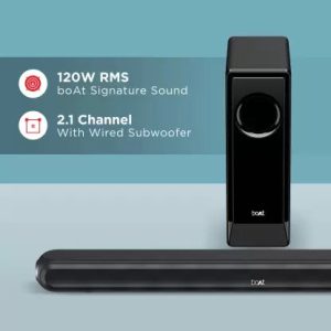 This Soundbar comes with a wired subwoofer to deliver heavy bass along with 120-WATT RMS resonant sound. Enjoy the sound that transports you directly into movies. It roars to life with unbelievable power.