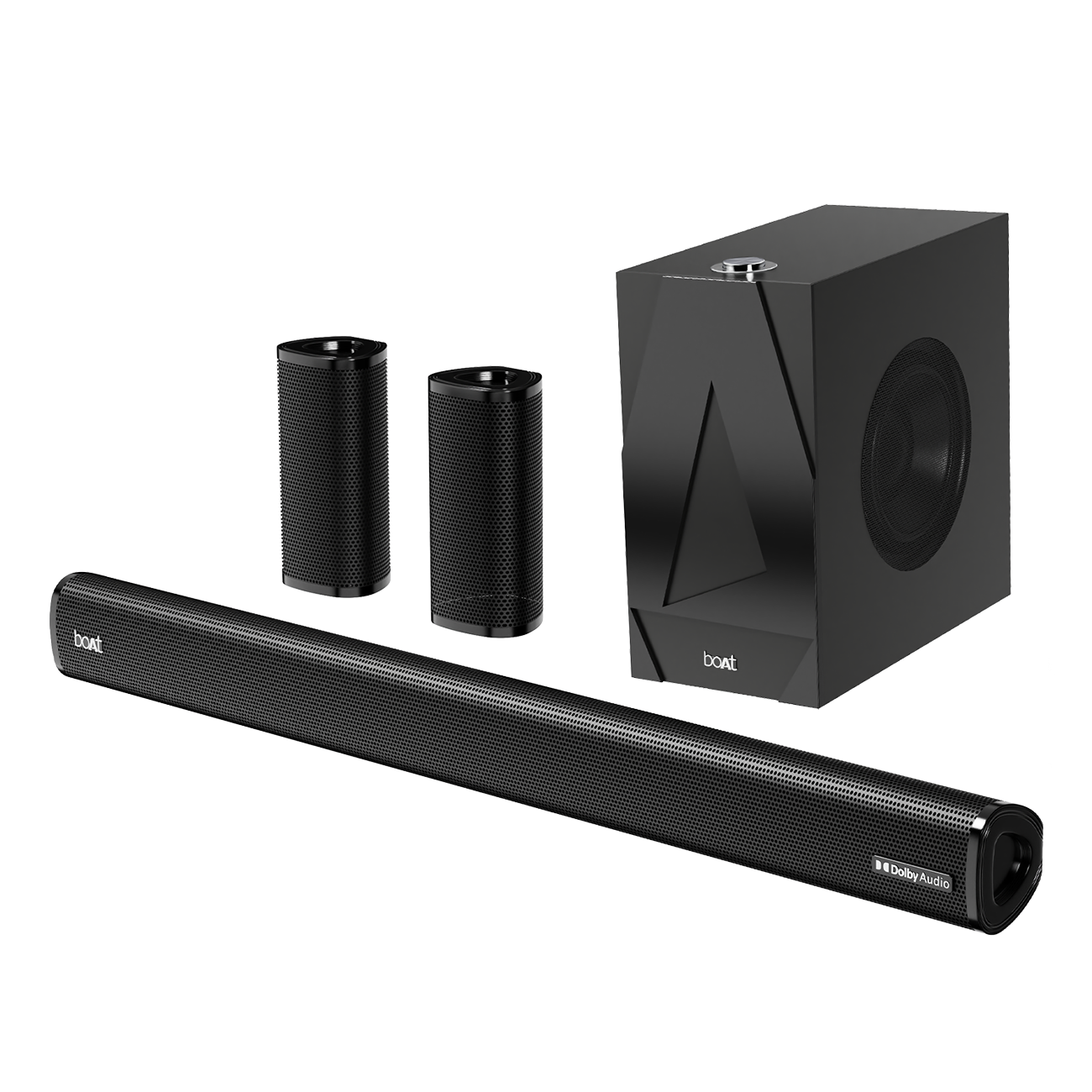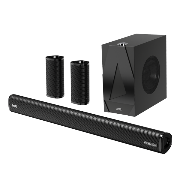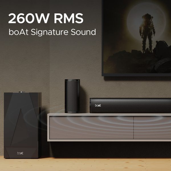 Listen to the captivating boAt Signature HD Sound with the 260W RMS sound designed to give a thrilling experience. The wired subwoofer will give you bass that’s as powerful as your movie night deserves.