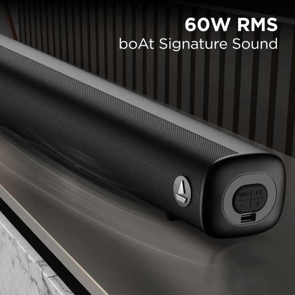 Experience a bold and loud sound enveloping all the corners of the room with the all-new boAt Aavante Bar Tune. With 60W RMS boAt Signature Sound and a 2.0 channel arrangement, this boAt Aavante Bar ups your entertainment everytime.
