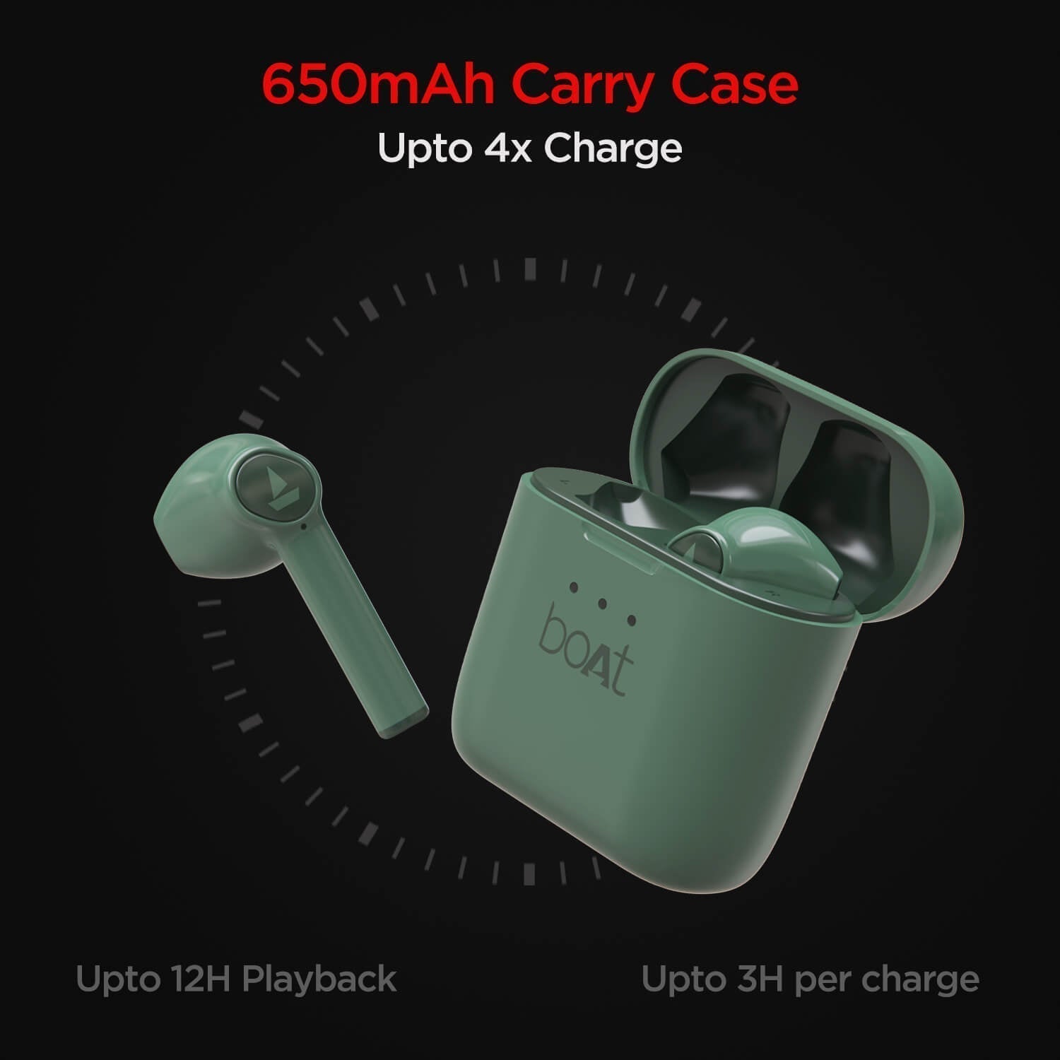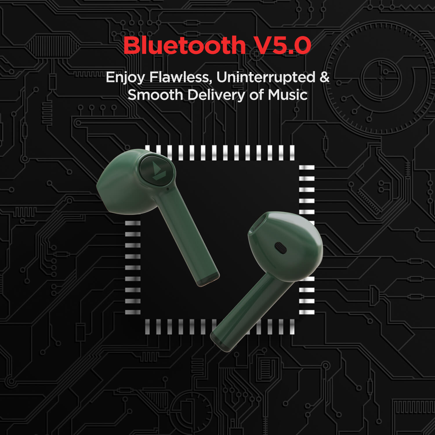 Sleek. Comfortable. Stylish. And a Splash of Incredible Colours. Bring alive your favourite sounds with these true wireless earbuds Equipped with 13mm drivers for the magical boAt signature sound. Designed for supreme ease with Insta Wake N’ Pair technology that auto connects the moment it’s out of the case and Type C Charging. Tws earbuds to drown all the sounds you don’t need and live every moment. With a battery capacity of 40mAh for each earbud, indulge in a blissful audio experience for up to 3 hours in a go. Tap into instant wireless functionality with optimum Bluetooth V5.0