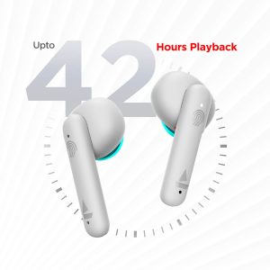 Let the noise of the world drown as you jam to your rhythm with Airdopes 148. Equipped with 8mm drivers, these dope wireless earbuds make your playlist sound better with crystal clear audio quality and powerful bass. Experience seamless calling and be clearly heard with ENxTM Technology. That is not all, ASAPTM Charge technology empowers you with 75 minutes of playback with just 5 minutes of charging. With IPX4 Sweat and Water Resistance, there’s no stopping you from listening to your workout mix while breaking a sweat. Moreover, its IWPTM Technology and Quick Response Touch Controls ensure you can answer calls and switch music without interrupting your flow. Go ahead, your perfect audio match is right here.