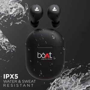 Immerse in your playlist for a long time as you don Airdopes 381 Make in India with pride. Its 20 Hours non-stop playback will keep your charging worries at bay. With IPX5, Airdopes 381 Make in India is water resistant, making it perfect for outdoor adventures. Groove on your tunes with its 7mm drivers.