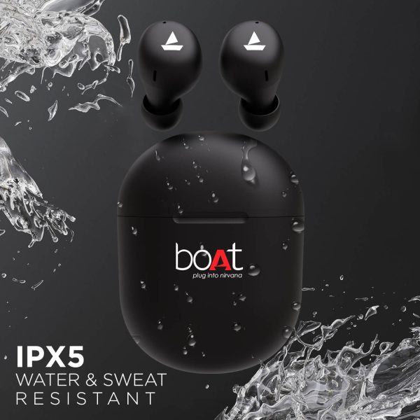 Immerse in your playlist for a long time as you don Airdopes 381 Make in India with pride. Its 20 Hours non-stop playback will keep your charging worries at bay. With IPX5, Airdopes 381 Make in India is water resistant, making it perfect for outdoor adventures. Groove on your tunes with its 7mm drivers.