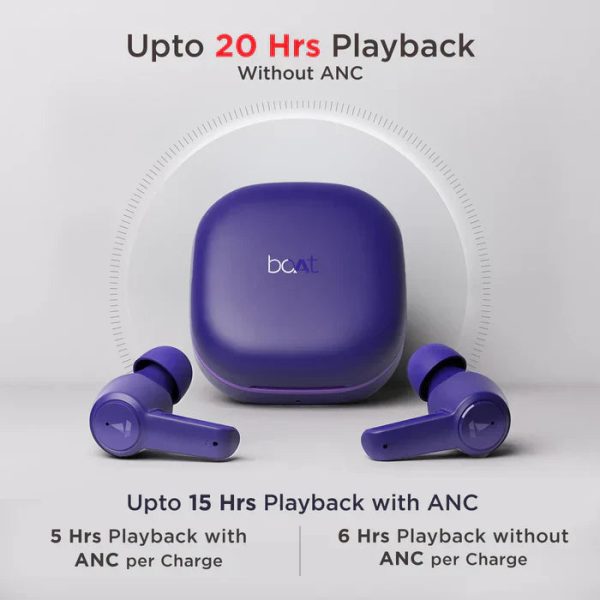 Leave all the charging worries at bay. Airdopes 413 comes with a gigantic battery that allows for a playback of up to 20 Hours — so keep dancing to your rhythms. *At 60% volume without ANC