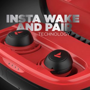 Plug into the most seamless workouts with these true wireless earbuds designed for sweat, splash, and water resistance. The perfect Secure Fit for outdoors with advanced capacitive touch controls to power your non stop hustle. Hit the gym or play on the field, these earbuds remain intact. Experience 6mm drivers for immersive sound. These noise cancelling bluetooth earbuds come with the latest V5.0 technology for instant connectivity. Insta Wake N’ Pair Technology powers on their connection mode as soon as they’re out of the earbuds case.