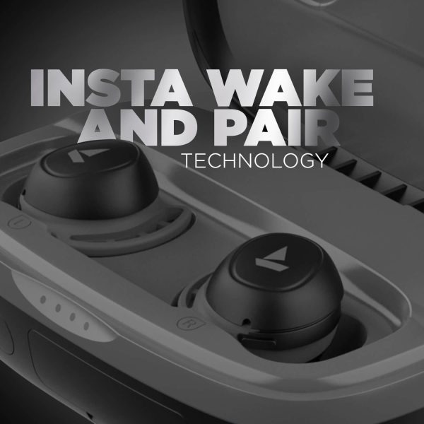 Plug into the most seamless workouts with these true wireless earbuds designed for sweat, splash, and water resistance. The perfect Secure Fit for outdoors with advanced capacitive touch controls to power your non stop hustle. Hit the gym or play on the field, these earbuds remain intact. Experience 6mm drivers for immersive sound. These noise cancelling bluetooth earbuds come with the latest V5.0 technology for instant connectivity. Insta Wake N’ Pair Technology powers on their connection mode as soon as they’re out of the earbuds case.