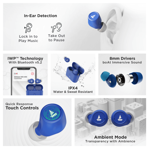Get an uncompromising aural experience that gives you the sound you need, whenever you need it. Airdopes 500 ANC noise cancelling earbuds help you block unwanted background noise.