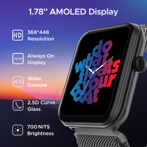 Introducing Cosmos Plus, designed to enhance your everyday life. Its 1.78″ AMOLED display, advanced BT calling, IP68, Dust Sweat & splash resistance brings a new level of convenience and sophistication to your wrist. Packed with 100 plus sports modes and sleek dynamics, combine style, fitness, and functionality in one smartwatch. Wear Cosmos Plus on your wrist & unleash the power of convenience.