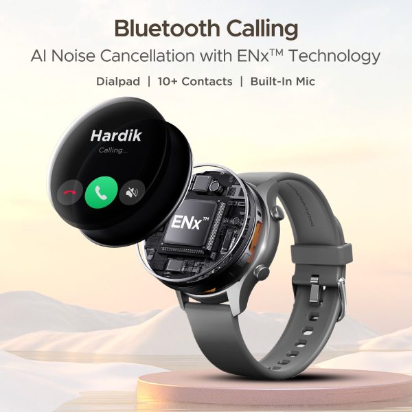 Connect effortlessly with our new calling smartwatch through single-chip Bluetooth calling. Enjoy uninterrupted calls with AI noise cancellations with ENx™ Technology, eliminating background noise and transmitting your voice clearly.