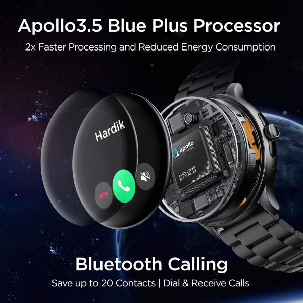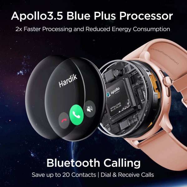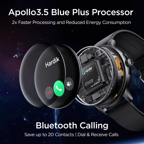 Lunar Call Pro comes with Apollo3.5 Blue Plus processor. This efficient chip dramatically reduces energy consumption while still enabling abundant application processing power to add greater capability and extended life to your smartwatch, making your processes 2X times faster than other watches.