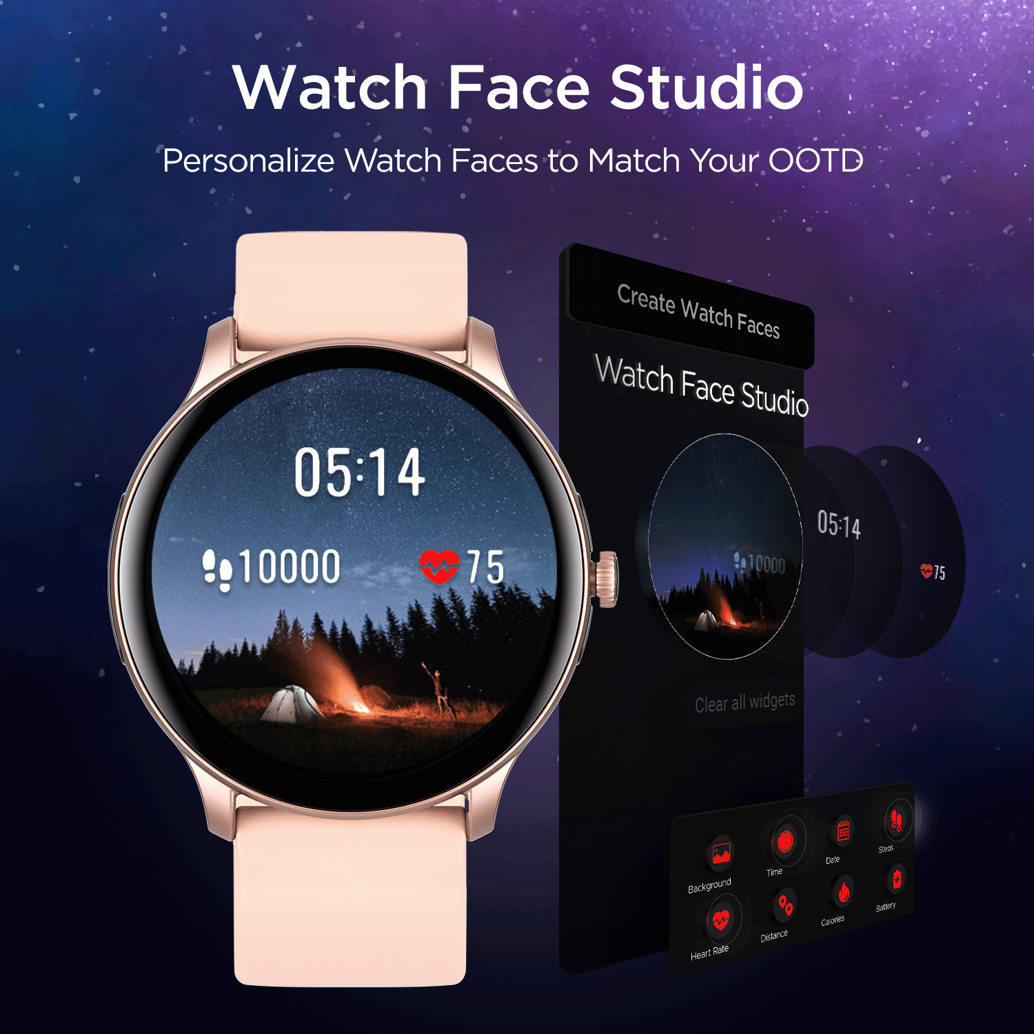 Take personalization to the next level with DIY Watch Face Studio. Make your own watch face from scratch by choosing an image of your choice, time in analogue or digital style, colour, fonts and the features you would like to display. You can also choose from the premade watch faces.