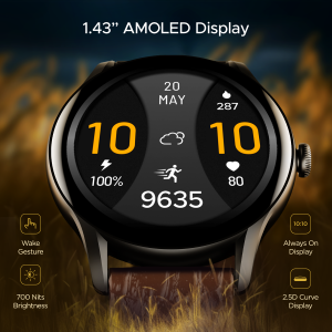 Experience excellence with 1.43” AMOLED Display that gets you unmatched clarity and rich colour output. Choose to keep it on Always On Display never miss any detail with its 700 Nits brightness.