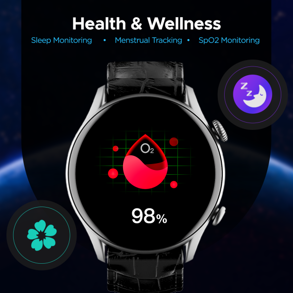 Immerse yourself in crystal-clear visuals with the Lunar Space’s vibrant 1.3″ round HD display. With unmatched clarity, enjoy easy access your watch’s features and information at a glance.