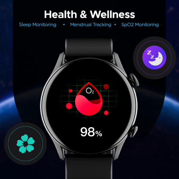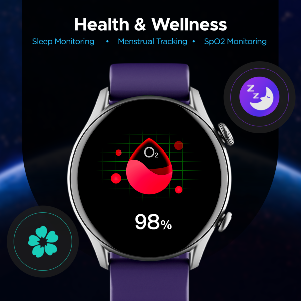 Keep a close watch on your health with the smartwatch’s advanced monitoring capabilities. Track your heart rate, blood oxygen levels, and stress levels 24X7, without any hassle.