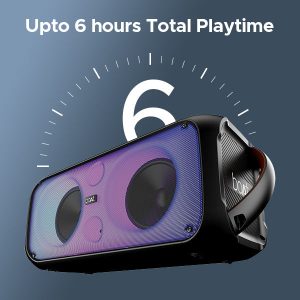 Party Pal 300 is not just a speaker; it’s your “pal” that knows how to turn any gathering into an unforgettable celebration. With its 120W RMS Stereo, experience mind-blowing boAt Signature Sound and dance the night away. The dynamic flame LEDs turn your space into an electrifying spectacle. With up to 6 hours total playtime, Party Pal 300 is your ultimate companion – whether it’s a backyard BBQ, impromptu jam session, or a rooftop soirée!