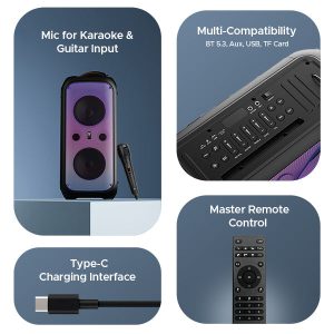 With its multi-device compatibility and convenient Type C connectivity, Party Pal 300 ensures hassle-free and easy pairing with all your devices, allowing you to take full control with the master remote.