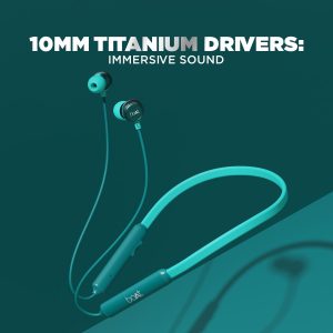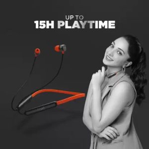 The ergonomically designed neckband dons magnetic earbuds for a hassle-free usage experience.
