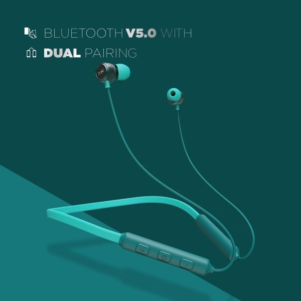 The ergonomically designed neckband dons magnetic earbuds for a hassle-free usage experience.