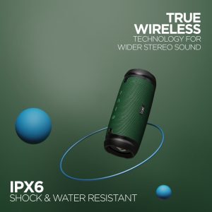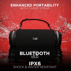 Immerse in Nirvana with boAt Stone 1508 portable wireless speaker. The speaker comes equipped with instant Bluetooth v4.2 for optimum wireless connectivity. The powerful drivers offer dynamic 40W boAt Signature Sound to enthrall you while you immerse in blissful auditory experience. The colossal 4000mAh battery helps pump out playback for up to 15 hours and the speaker comes equipped with Type-C charging port for seamless charging. Its rugged and robust design is IPX6 rated that ensures resistance against shocks or water scares.