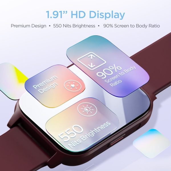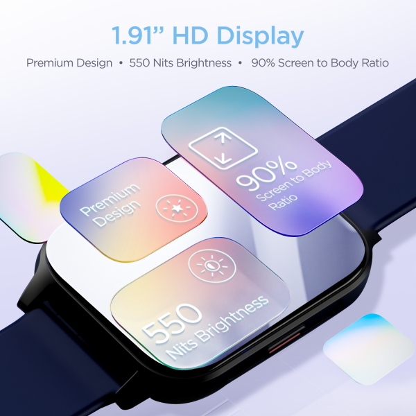 Experience vivid and sharp colours on a 1.91″ HD Display boasting a 90% screen-to-body ratio, 2.5D curved design, and 550nits brightness, making it easy to read and navigate through the watch.