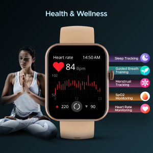Track, Monitor and record your health and wellness journey. Featuring SpO2 monitoring, menstrual tracking, and sleep monitoring, it tracks your vitals 24X7. Keep them in check with meditative breathing with Guided breath feature on our Calling smart watch.