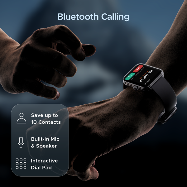 Track, Monitor and record your health and wellness journey. Featuring SpO2 monitoring, menstrual tracking, and sleep monitoring, it tracks your vitals 24X7. Keep them in check with meditative breathing with Guided breath feature on our Calling smart watch.
