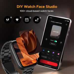 Introducing Ultima Chronos powered by Crest OS+. Elevate your wearable experience with a brilliant 1.96″ (4.97cm) AMOLED Display for vibrant visuals. Express your unique style with DIY Watch Face customization. Stay connected on the move with BT Calling for seamless communication. With 100+ watch faces, don a new look every day!