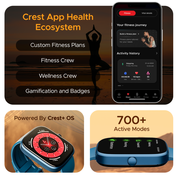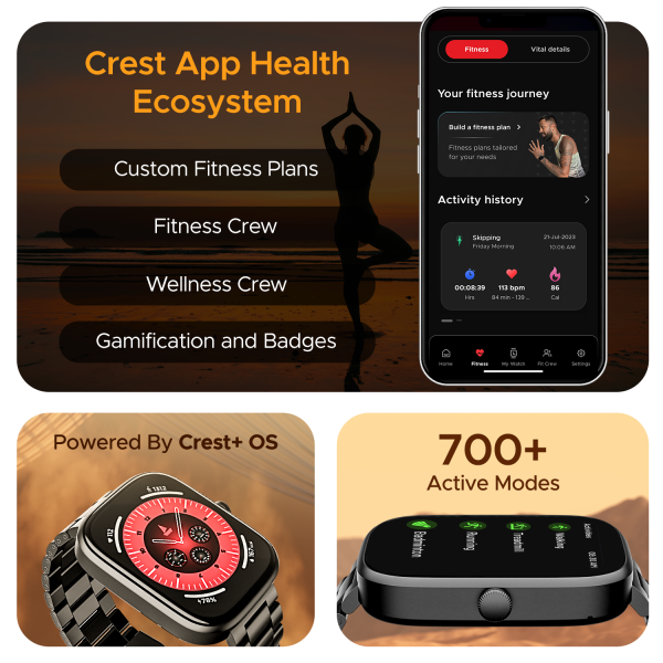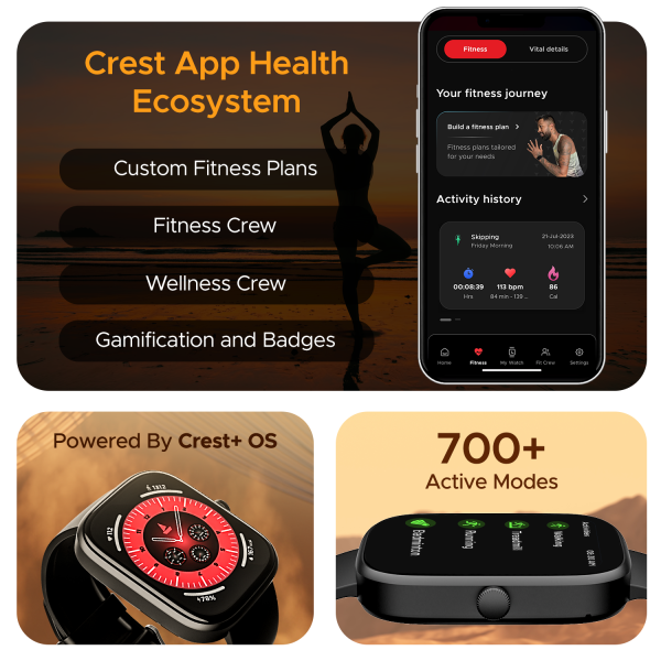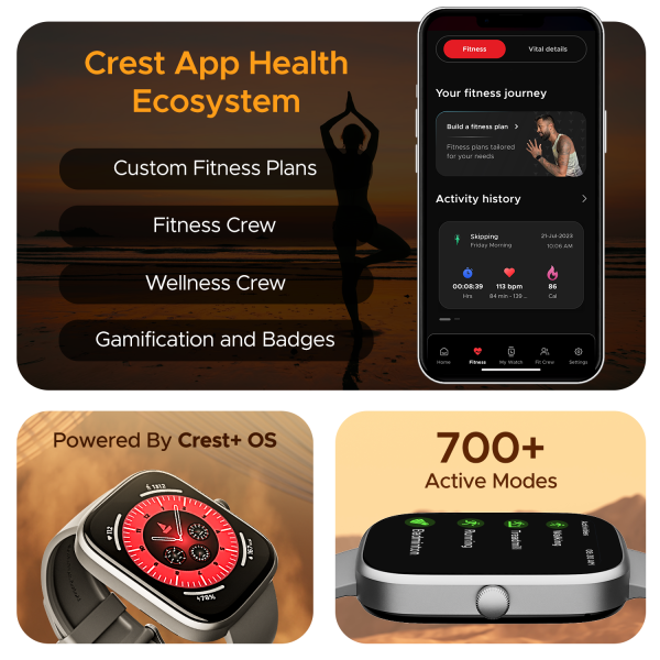 Time to Immerse yourself in the comprehensive Crest App Health Ecosystem, designed to support and enhance your overall well-being. Find a wide range of health and wellness features, that also make fitness fun and engaging.