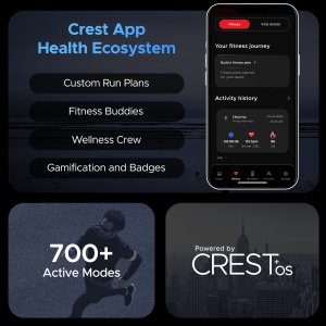 Powered by Crest OS+, Wave Astra revolutionizes health tracking with 700+ active modes and Crest App Health Ecosystem, ensuring that you make informed decisions on your health.