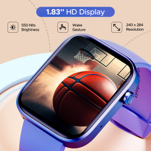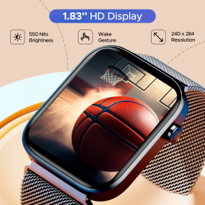 Immerse yourself in a visual delight with the expansive 1.83″ HD Display of this smartwatch, boasting vibrant visuals that come to life. Not only this but with its intuitive wake gesture, you can light up your display without hassle.