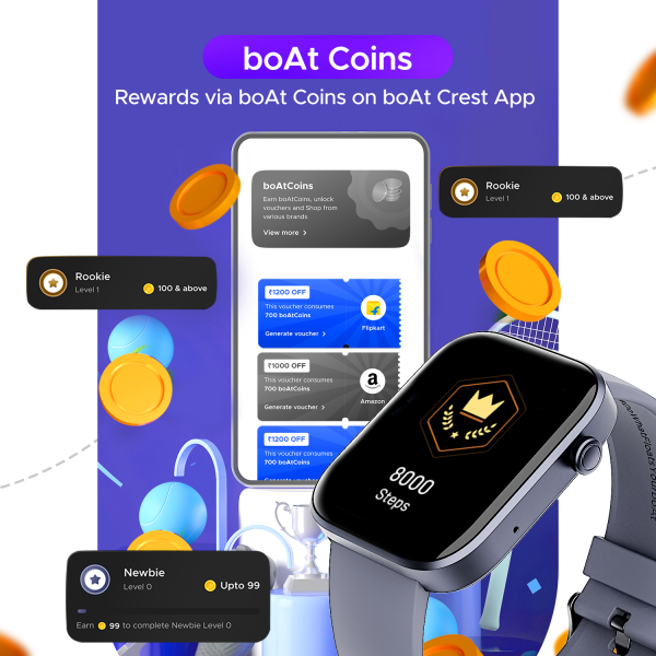Earn boAt Coins as you maintain fitness levels, complete challenges, and achieve wellness goals. Experience the perfect blend of fitness and fun with boAt Coins, making your wellness journey even more rewarding.