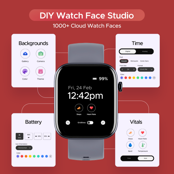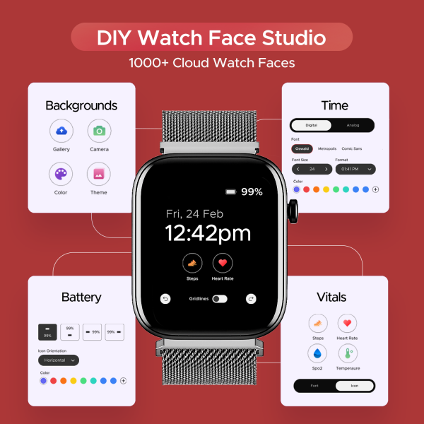 Experience the ultimate freedom of personal expression with Wave Call 2’s revolutionary DIY Watch Face Studio. Unleash your creativity and choose from an impressive collection of 1000+ stunning watch faces, allowing you to design a timepiece as unique as you are.