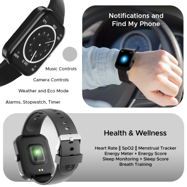 Experience the convenience of extended battery life with Wave Cosmos Max, providing an impressive duration of up to 10 days*, freeing you from frequent charging hassles. *Up to 2 Days with BT Calling activated.