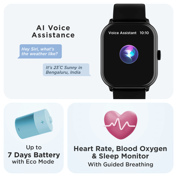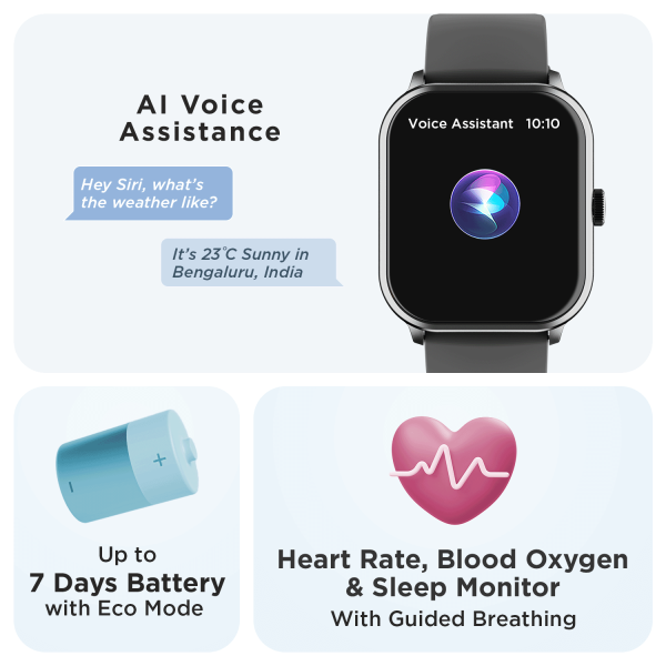 Stay charged and ready with up to 7 days of battery backup with eco mode. The IP68 dust and water resistance protects your smartwatch from any and every hazard.