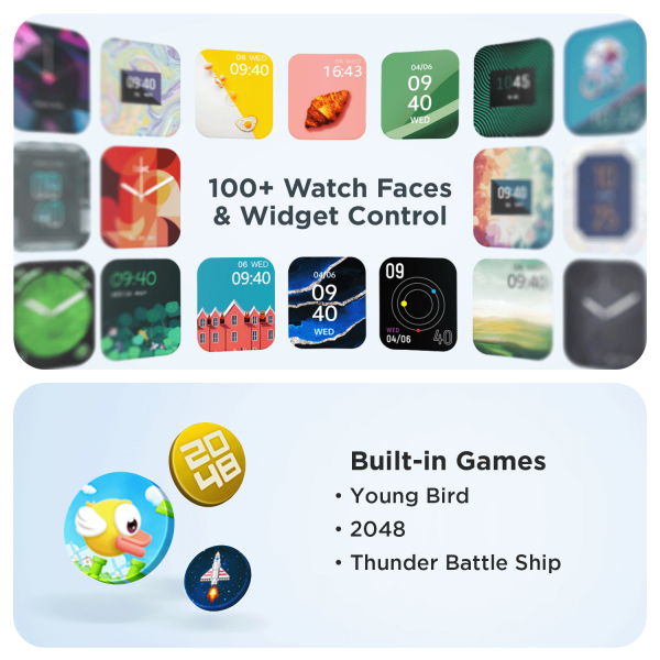 Take your fitness to the next level with over 100+ sports modes and multiple active modes. Get detailed insights on your health and fitness with a heart rate sensor, blood oxygen sensor, sleep tracker and more!
