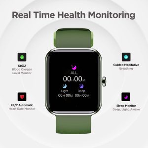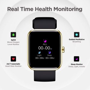 1.69″ (4.29 Cms) inch colour LCD display with a round dial featuring a complete capacitive touch experience and a responsive touch interface that lets you take control over everything effortlessly!