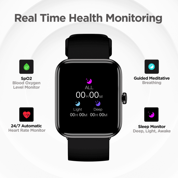 1.69″ (4.29 Cms) inch colour LCD display with a round dial featuring a complete capacitive touch experience and a responsive touch interface that lets you take control over everything effortlessly!