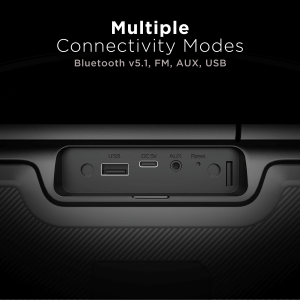 Indulge in music like never before with multiple connectivity modes- FM, Bluetooth v5.1, AUX, & USB.