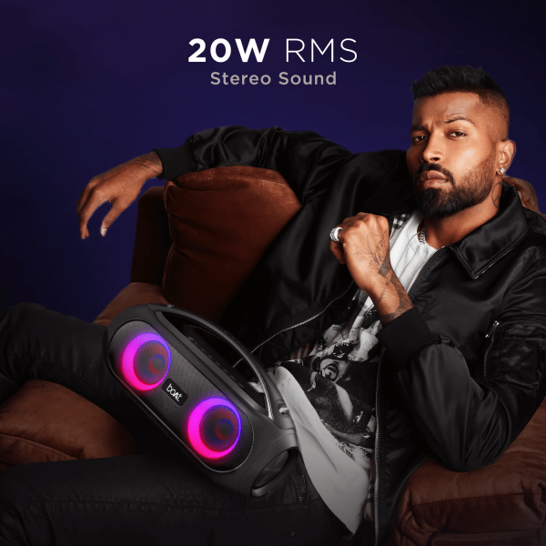 Immerse in the 20W RMS Stereo Sound with the powerful Party Pal 50 bluetooth speaker. Set the vibes of the party just right with the RGB LEDs. Keep worries at bay and party poolside with IPX5 splash resistant! Get, set, grooving as Party Pal 50 comes with a powerful playback of 4.5 Hrs. Access Instant Voice Assistant and enjoy the multiple connectivity modes- USB, AUX, Bluetooth v5.1, and FM. Coming with Type-C interface, Party Pal 50 is all you need to set the mood just about right. So, where y’all partying at?