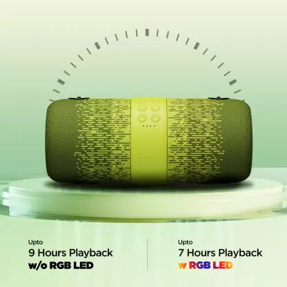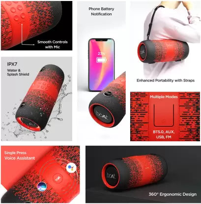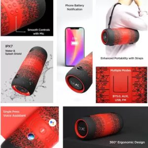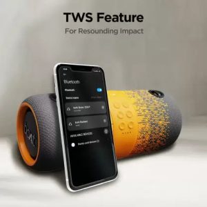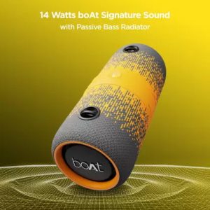 Add life to all your parties with the ultimate jukebox – Stone 1200F bluetooth speaker. It’s powered by 14W boAt Signature Sound with Passive Bass Radiator that’s built to add spark to all your plans. The RGB LED lights are perfect to set the perfect vibe for a casual chilling session with your best buds. You can take it along everywhere you go with its 360-degree ergonomic design, shoulder strap and IPX7 Water & Splash Resistance that protects it even when outdoors. Need a sound setup for a bigger party? Add a second speaker with its TWS feature and blast your music with 2x power. It also comes with an enormous playback time of 9 hours. Experience your music like never before with Stone 1200F.
