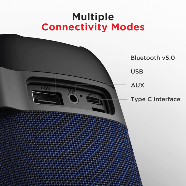 Multiple Connectivity Modes: Bluetooth v5.0 + AUX + USB + FM