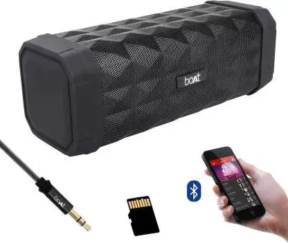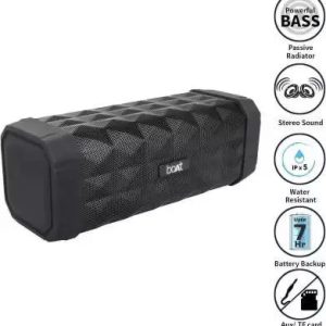 Surrounded by smooth secure silicon coated on the outside and a diamond gridded mesh, break the balance with the IPX 5 rated boAt stone 650R best bluetooth speaker. This dynamic speaker with 2-inch x 2 drivers with 10w’s gives you that premium audio experience, so enter the session of sound. So up your game with Bluetooth v5.0 for the optimum wireless experience that can switch into aux mode at a moment’s notice. Perfect for you and your friends, light up the scene with up to 7 hours of playtime backed by a 1800mah capacity lithium battery.